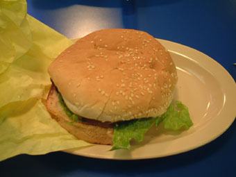お店を出て、隣のハンバーガーショップで夕食。チーズバーガーとペプシ、というオーソドックスな夕食。帰りのハイウエイは空いてて、一時間ちょっとで帰れました。やっぱり日を選ぶべきだったか(^^;)。
