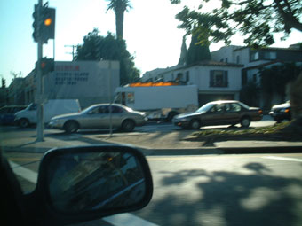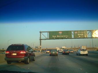 食後、レコード屋を絞り込む。おおまえさんの裏情報等により、SAN BERNARDINOにあるGROOVE TIMEというレコ屋に決定。フリーウエイを使って1時間半くらいとのこと。2時半過ぎに出発。フリーウエイに乗る前に、ジュラシック5のアルバムジャケットを撮影した場所を通る、ということで、1枚記念にと撮影したが、失敗しました。